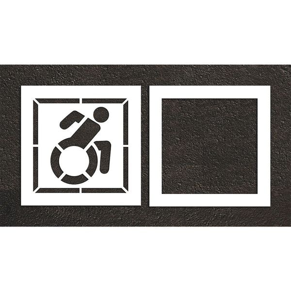 Individual Stencil, Character Type Symbol, Duty Heavy, FAA AC 150/5340-1K Compliant No, Font Not Applicable, Included Characters, Messages, and Symbols Handicap, Individual Character Height Not Applicable, Individual Character Width Not Applicable, Interlocking No, Interlocking Orientation Not Applicable, Material Low Density Polyethylene (LDPE), Message or Symbol Height 30 in, Message or Symbol Width 30 in, Number of Pieces 2, Overall Stencil Height 38 in, Overall Stencil Thickness 0.125 in
