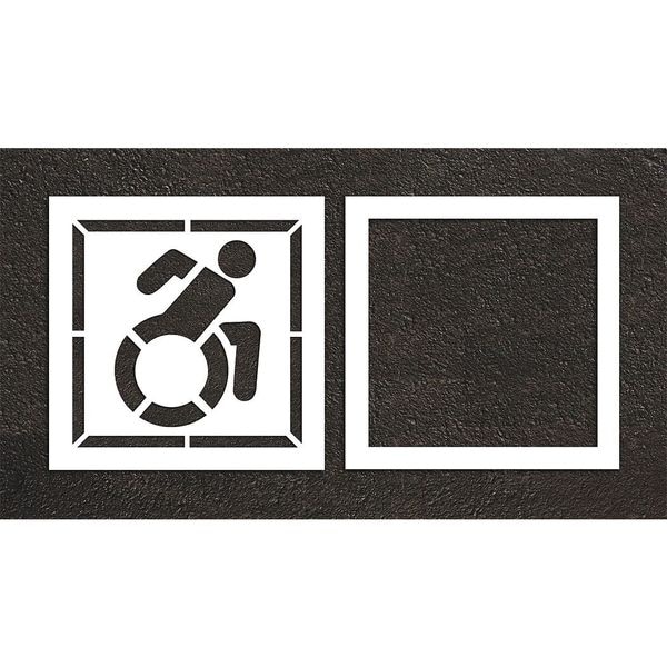 Individual Stencil, Character Type Symbol, Duty Heavy, FAA AC 150/5340-1K Compliant No, Font Not Applicable, Included Characters, Messages, and Symbols Handicap, Individual Character Height Not Applicable, Individual Character Width Not Applicable, Interlocking No, Interlocking Orientation Not Applicable, Material Low Density Polyethylene (LDPE), Message or Symbol Height 39 in, Message or Symbol Width 36 in, Number of Pieces 2, Overall Stencil Height 47 in, Overall Stencil Thickness 0.125 in
