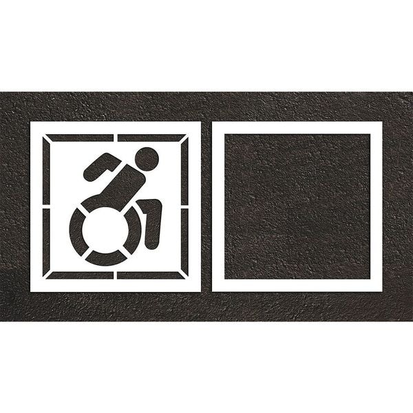 Individual Stencil, Character Type Symbol, Duty Heavy, FAA AC 150/5340-1K Compliant No, Font Not Applicable, Included Characters, Messages, and Symbols Handicap, Individual Character Height Not Applicable, Individual Character Width Not Applicable, Interlocking No, Interlocking Orientation Not Applicable, Material Low Density Polyethylene (LDPE), Message or Symbol Height 48 in, Message or Symbol Width 48 in, Number of Pieces 2, Overall Stencil Height 56 in, Overall Stencil Thickness 0.125 in