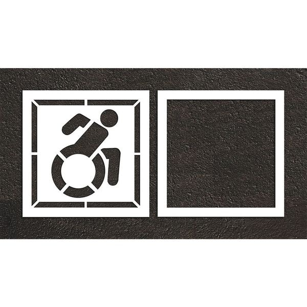 Individual Stencil, Character Type Symbol, Duty Light, FAA AC 150/5340-1K Compliant No, Font Not Applicable, Included Characters, Messages, and Symbols Handicap, Individual Character Height Not Applicable, Individual Character Width Not Applicable, Interlocking No, Interlocking Orientation Not Applicable, Material Low Density Polyethylene (LDPE), Message or Symbol Height 48 in, Message or Symbol Width 48 in, Number of Pieces 2, Overall Stencil Height 56 in, Overall Stencil Thickness 0.063 in