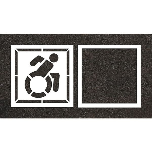 Individual Stencil, Character Type Symbol, Duty Light, FAA AC 150/5340-1K Compliant No, Font Not Applicable, Included Characters, Messages, and Symbols Handicap, Individual Character Height Not Applicable, Individual Character Width Not Applicable, Interlocking No, Interlocking Orientation Not Applicable, Material Low Density Polyethylene (LDPE), Message or Symbol Height 56 in, Message or Symbol Width 57 in, Number of Pieces 2, Overall Stencil Height 64 in, Overall Stencil Thickness 0.063 in