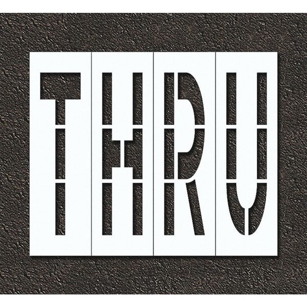 Individual Stencil, Character Type Message, Duty Heavy, FAA AC 150/5340-1K Compliant No, Font Highway Gothic, Included Characters, Messages, and Symbols Thru, Individual Character Height Not Applicable, Individual Character Width Not Applicable, Interlocking No, Interlocking Orientation Not Applicable, Material Polyethylene, Message or Symbol Height 96 in, Message or Symbol Width 132 in, Number of Pieces 1, Overall Stencil Height 120 in, Overall Stencil Thickness 0.125 in