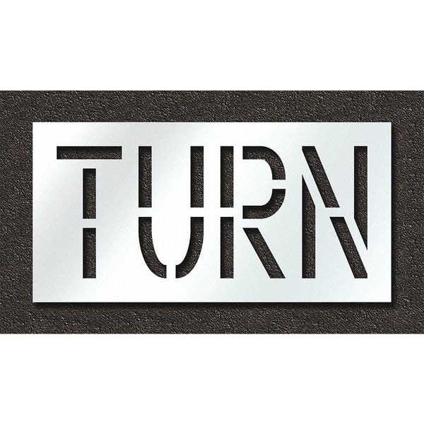 Individual Stencil, Character Type Message, Duty Heavy, FAA AC 150/5340-1K Compliant No, Font Highway Gothic, Included Characters, Messages, and Symbols Turn, Individual Character Height Not Applicable, Individual Character Width Not Applicable, Interlocking No, Interlocking Orientation Not Applicable, Material Polyethylene, Message or Symbol Height 18 in, Message or Symbol Width 42 in, Number of Pieces 1, Overall Stencil Height 24 in, Overall Stencil Thickness 0.125 in