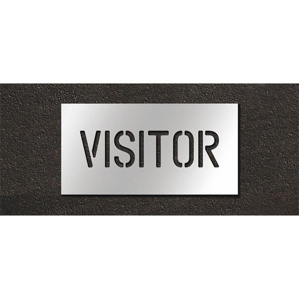 Individual Stencil, Character Type Message, Duty Heavy, FAA AC 150/5340-1K Compliant No, Font Highway Gothic, Included Characters, Messages, and Symbols Visitor, Individual Character Height Not Applicable, Individual Character Width Not Applicable, Interlocking No, Interlocking Orientation Not Applicable, Material Polyethylene, Message or Symbol Height 4 in, Message or Symbol Width 15 in, Number of Pieces 1, Overall Stencil Height 10 in, Overall Stencil Thickness 0.125 in