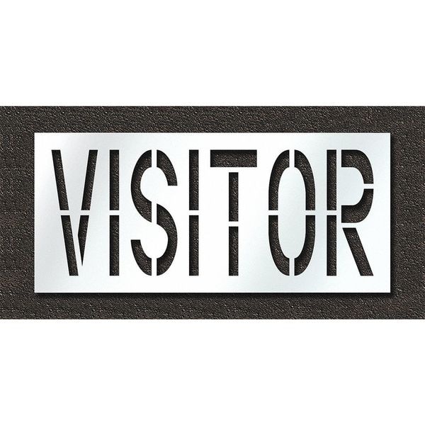 Individual Stencil, Character Type Message, Duty Heavy, FAA AC 150/5340-1K Compliant No, Font Highway Gothic, Included Characters, Messages, and Symbols Visitor, Individual Character Height Not Applicable, Individual Character Width Not Applicable, Interlocking No, Interlocking Orientation Not Applicable, Material Polyethylene, Message or Symbol Height 24 in, Message or Symbol Width 61 in, Number of Pieces 1, Overall Stencil Height 30 in, Overall Stencil Thickness 0.125 in