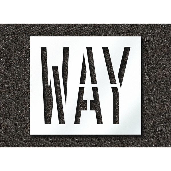 Individual Stencil, Character Type Message, Duty Heavy, FAA AC 150/5340-1K Compliant No, Font Highway Gothic, Included Characters, Messages, and Symbols Way, Individual Character Height Not Applicable, Individual Character Width Not Applicable, Interlocking No, Interlocking Orientation Not Applicable, Material Polyethylene, Message or Symbol Height 24 in, Message or Symbol Width 28 in, Number of Pieces 1, Overall Stencil Height 30 in, Overall Stencil Thickness 0.125 in