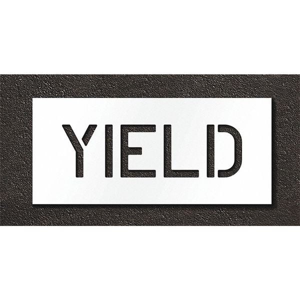 Individual Stencil, Character Type Message, Duty Heavy, FAA AC 150/5340-1K Compliant No, Font Highway Gothic, Included Characters, Messages, and Symbols Yield, Individual Character Height Not Applicable, Individual Character Width Not Applicable, Interlocking No, Interlocking Orientation Not Applicable, Material Polyethylene, Message or Symbol Height 10 in, Message or Symbol Width 39 in, Number of Pieces 1, Overall Stencil Height 16 in, Overall Stencil Thickness 0.125 in