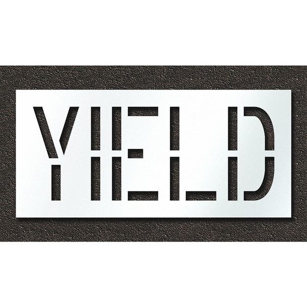 Individual Stencil, Character Type Message, Duty Heavy, FAA AC 150/5340-1K Compliant No, Font Highway Gothic, Included Characters, Messages, and Symbols Yield, Individual Character Height Not Applicable, Individual Character Width Not Applicable, Interlocking No, Interlocking Orientation Not Applicable, Material Polyethylene, Message or Symbol Height 18 in, Message or Symbol Width 46 in, Number of Pieces 1, Overall Stencil Height 24 in, Overall Stencil Thickness 0.125 in