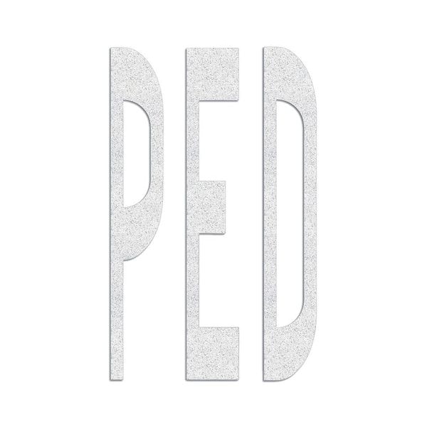 Preformed Thermoplastic Pavement Markings, Legend Ped, Overall Length 8 ft, Overall Width 4 1/2 ft, Thickness 125 mil, Material Thermoplastic, Color White, Application Method Hand Torch, Shelf Life 2 yr, Standards ASTM D 6628, ASTM E 303, MUTCD Compliant, FHWA, AASHTO M-249, Number of Pieces 1