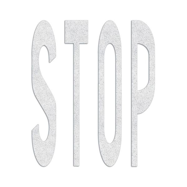Preformed Thermoplastic Pavement Markings, Legend Stop, Overall Length 8 ft, Overall Width 6 1/8 ft, Thickness 90 mil, Material Thermoplastic, Color White, Application Method Hand Torch, Shelf Life 2 yr, Standards ASTM D 6628, ASTM E 303, MUTCD Compliant, FHWA, AASHTO M-249, Number of Pieces 1