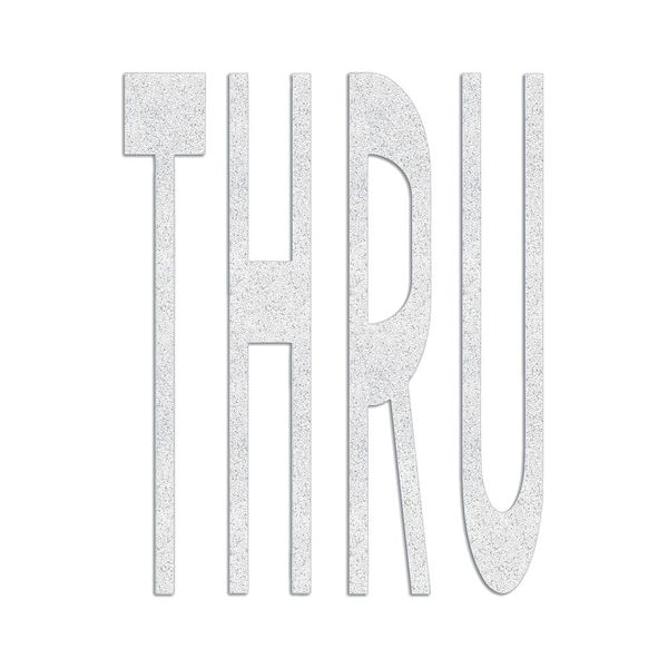 Preformed Thermoplastic Pavement Markings, Legend Thru, Overall Length 8 ft, Overall Width 6 1/8 ft, Thickness 125 mil, Material Thermoplastic, Color White, Application Method Hand Torch, Shelf Life 2 yr, Standards ASTM D 6628, ASTM E 303, MUTCD Compliant, FHWA, AASHTO M-249, Number of Pieces 1