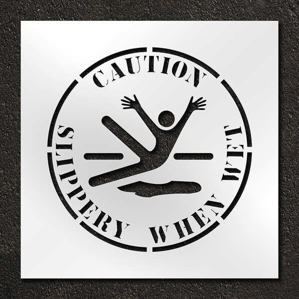 Stencil, Symbol, Caution Slippery When Wet, 24 in Character Height, Polyethylene, Clear, 1 Pieces