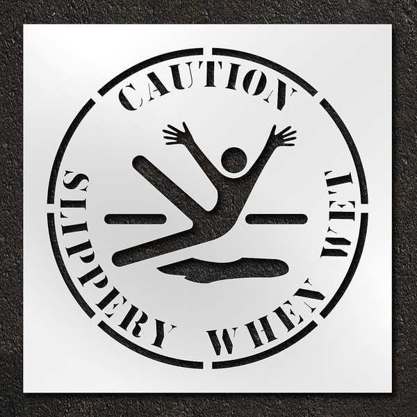 Stencil, Symbol, Caution Slippery When Wet, 42 in Character Height, Polyethylene, Clear, 1 Pieces