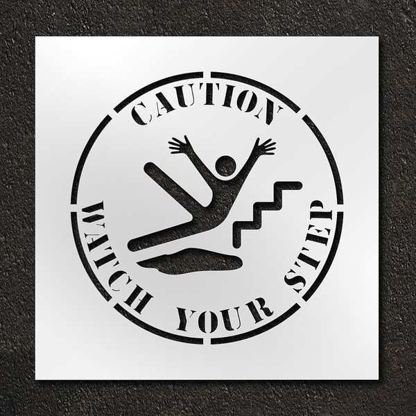 Stencil, Symbol, Caution Watch Your Step, 24 in Character Height, Polyethylene, Clear, 1 Pieces