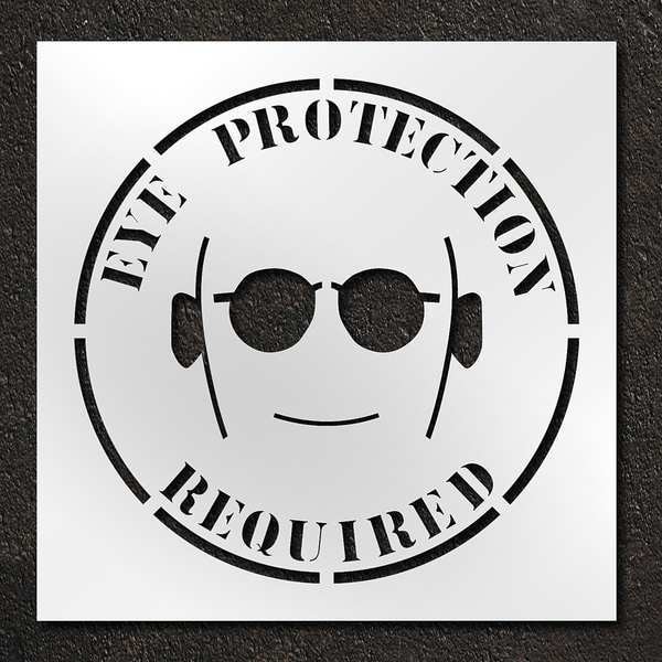 Stencil, Symbol, Eye Protection Required, 42 in Character Height, Polyethylene, Clear, 1 Pieces
