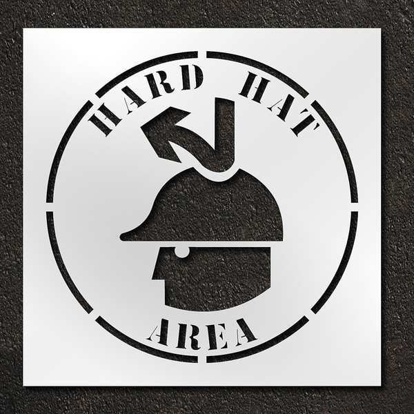 Stencil, Symbol, Hard Hat Area, 42 in Character Height, Polyethylene, Clear, 1 Pieces