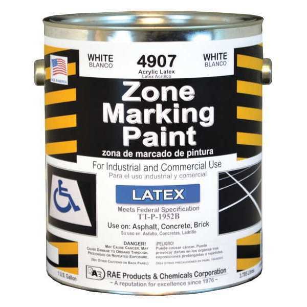 Traffic Zone Marking Paint, Latex Acrylic Base Type, Line Striping Aerosol No, White, Size 1 gal, Traffic Zone Marking Paint, Paint and Primer Surface Material Asphalt, Brick, Concrete, Grass, Paint and Primer Application Method Brush, Roller, Striping Machine, Coverage 420 Linear ft/4 in Strip, Net Weight 3.78 L, Dry Time 1 to 2 hr, Dry Time Tack Free 30 min, Application Temperature 40 Degrees to 100 Degrees F, Mild to Moderate Exposure Conditions, VOC Content 69 g/L, Standards TT-P-1952B
