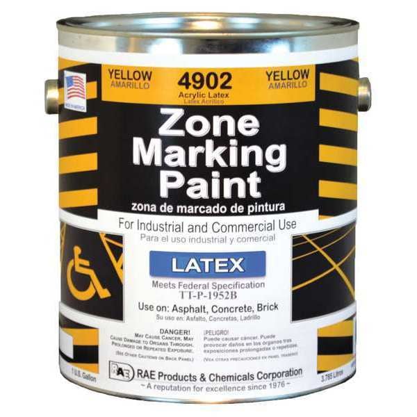 Traffic Zone Marking Paint, Latex Acrylic Base Type, Line Striping Aerosol No, Yellow, Size 1 gal, Traffic Zone Marking Paint, Paint and Primer Surface Material Asphalt, Brick, Concrete, Grass, Paint and Primer Application Method Brush, Roller, Striping Machine, Coverage 420 Linear ft/4 in Strip, Net Weight 3.78 L, Dry Time 1 to 2 hr, Dry Time Tack Free 30 min, Application Temperature 40 Degrees to 100 Degrees F, Mild to Moderate Exposure Conditions, VOC Content 68 g/L, Standards TT-P-1952B