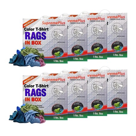 Recycled Color Knit T-Shirt Cleaning Rags, 800 lbs. Pallet, 160 x 5 lbs. Compressed Box, 160PK