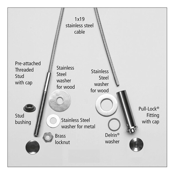 A through-the-post configuration is the ideal scenario to use the Basic threaded stud kits. The threaded studs are a functional fitting, not a hide-in-the-post solution. A brass hex nut and some metal thread (both covered by an end cap) will extend beyond the back of the post on one end. A Pull-Lock fitting is installed through the other end.