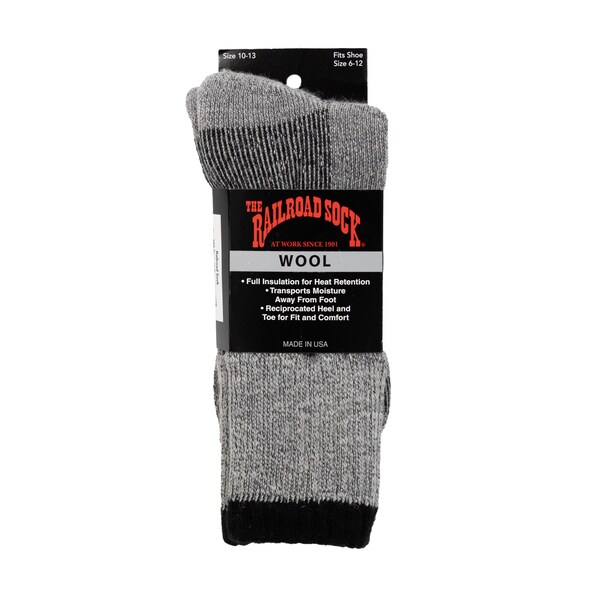 Mens Boot Socks, 40% Wool, 40% Polypropylene, 10% Acrylic, 10% Nylon, Grey/Black, 6-12 M, 1 PR