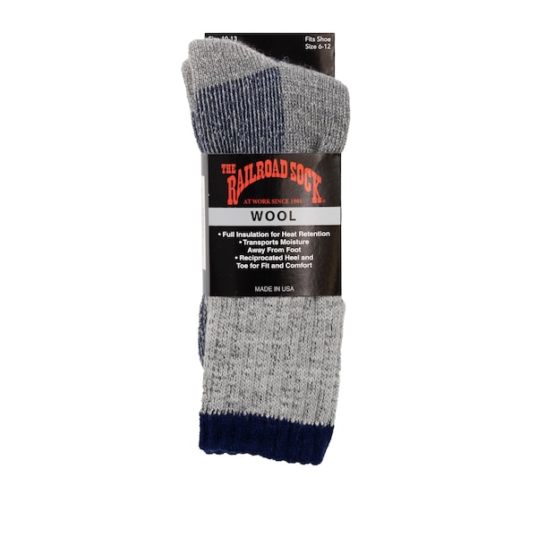Mens Boot Socks, 40% Wool, 40% Polypropylene, 10% Acrylic, 10% Nylon, Grey/Navy, 6-12 M, 1 PR