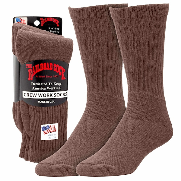 Mens Crew Socks, 85% Cotton, 15% Nylon, Brown, 6-12 M, 3 PK