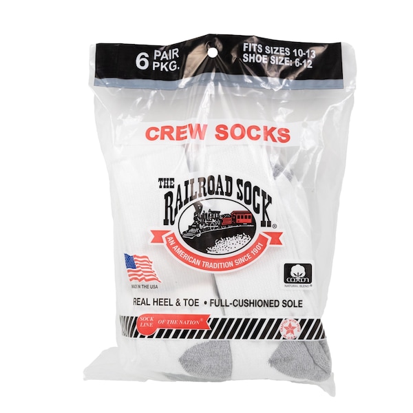 Save big on our popular Crew Socks! These soft, comfortable and durable socks feel great on your feet all day long and are made to keep its shape and size when laundered. Sold in a convenient 6pk bag.