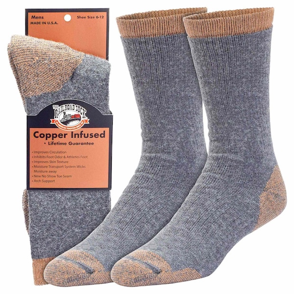 Mens Premium Copper Infused Crew Socks, Charcoal/Copper, 6-12 M, 1 PR