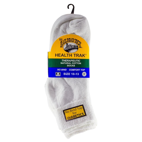 Mens Therapeutic Quarter Socks, 95% Cotton, 3% Nylon, 2% Elastic, White, 6-12 M, 3 PK