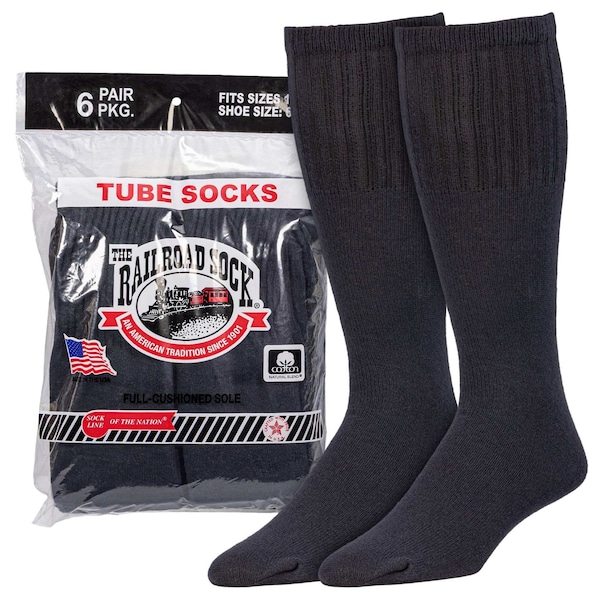 Men's Tube Socks - Black, 6PK
