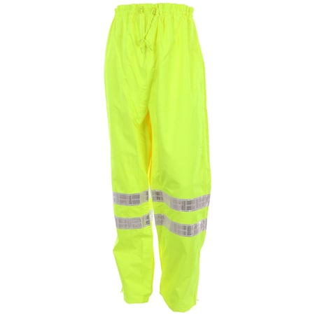 Unlined Rain Pant, 100% Polyester 300D Oxford PU Coated, Drawstring Closure, Hi-Vis Yellow, Size XL