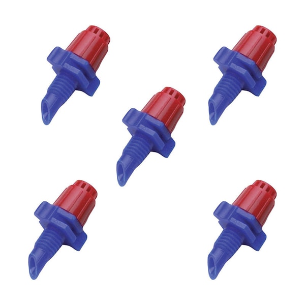 Deliver low volume overhead watering to gardens, flower beds, ground cover, and hillsides with the Micro Spray Jet. Stream spray emits water in a full-circle pattern up to 12.9 GPH, with a radius of up to 9.0 ft. (at 15-50 PSI). Jet has a 10-32 threaded inlet which screws onto a rigid riser with stake (not included); use 1/4 in. supply tubing to connect to the inlet barb found on the stake. The Micro Spray Jet operates at low pressures. Keep the jet from taking off by using a pressure regulator at the water source to reduce pressure. Micro Jets are made of polyethylene treated with UV inhibitors.