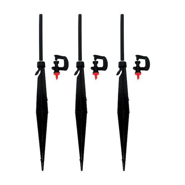 Need to water ground cover, germinate seeds, or water hillsides? The Micro Sprinkler is the answer. Setting it up is a snap with the Micro Sprinkler Assembly-it includes a sprinkler, riser, and heavy-duty stake, all preassembled and ready to connect to 1/4 in. supply tubing. This non-adjustable sprinkler with rotary spray emits water in a full-circle pattern at up to 23.9 GPH with a radius of up to 8.8 ft. (at 15-50 PSI). The Micro Sprinkler, also known as a Micro Sprayer, is made of polyethylene treated with UV inhibitors.