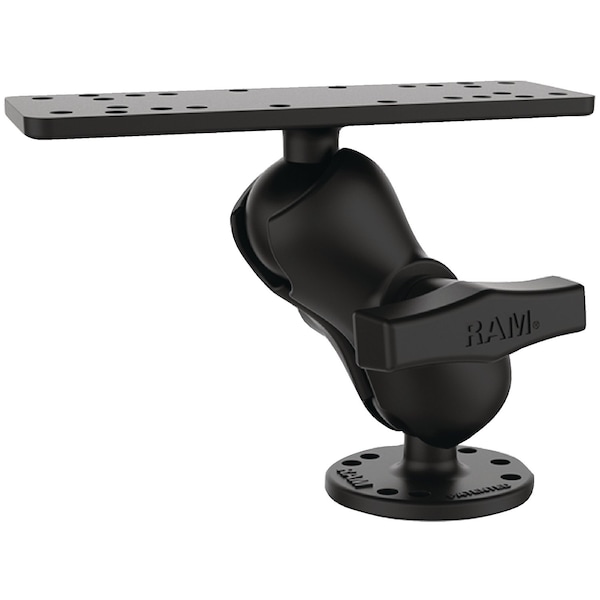 Consists of a 2.5" diameter round base that contains the universal AMPs hole pattern, a double socket arm and 6.25" x 2" rectangle base. The rectangle base contains different combinations of pre-drilled holes which will match up to many electronic devices and mounts, including Marine GPS, CB Radios, Ham Radios, Gimbal Brackets and more. Made of Powder Coated Marine Grade Aluminum.