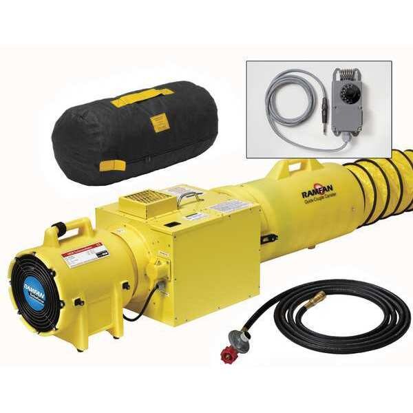 Confined Space Fan, Voltage 115V, Length 22 in, Width 14 in, Height 13 in, Btu 55,000, For Use With Shelters, Tents and Manholes, Includes Heater with Mfr. No. ED7025 (Fan with Canister), Remote Thermostat and Propane Tank Regulator Assembly