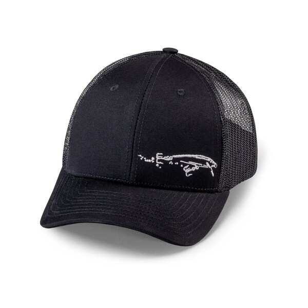 Casual Cap Embroidered Swimming Lure, Mesh Back, Snapback, Black (Discontinued)