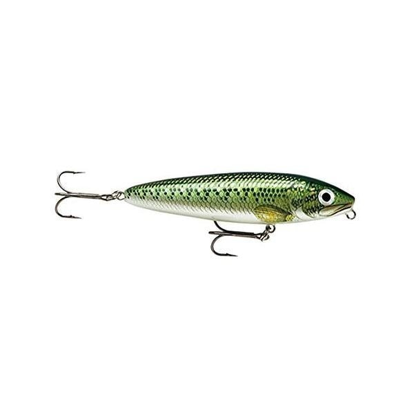 Product Description Rapala SW08BB Skitter Walk 08 Baby Bass From the Manufacturer Superior construction assures a perfect swimming bait rightoutofthebox Toss it out Pump Reel Pump Reel You're WalkingtheDog Weighted tail keeps bait in natural position even at rest Large internal rattles create a rhythmic sidetoside motionandsound combination that imitates wounded or fleeing baitfish All feature 3D holographic eyes and you can choose from appetizing painted or chrome color patterns All are equipped with VMC black nickel hooks Rapala SW08BB