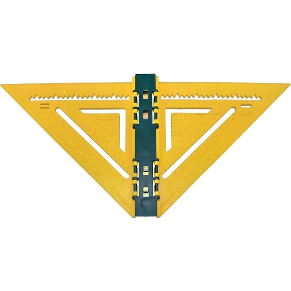 The Rapid Rafter is a patent-pending double-sided rafter square. Rapid Rafter not only reduces the amount of time by allowing for simultaneous marking on both sides of the board but it also increases accuracy by allowing the user to mark both sides of the board without moving the product. As a bonus the Rapid Rafter folds flat to be used as a normal square and to fit conveniently in your nail bag. Display includes (13) Rapid Rafter Double-Sided Rafter Squares.