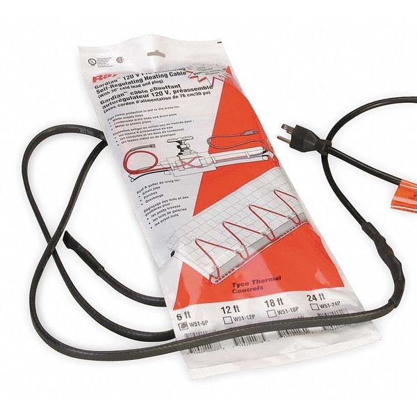 Raychem Self Regulating Heating Cable, 120VAC, 100 ft. Length W51-100P