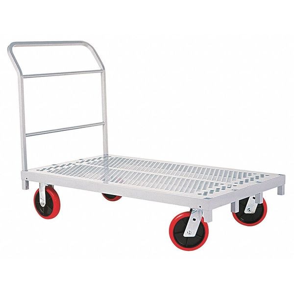 Platform Truck, Load Capacity 2,400 lb, Overall Height 43 in, Overall Length 54 in, Overall Width 30 in, Deck Construction Perforated, Deck Material Steel, Deck Finish/Coating Powder Coated, Deck Gauge 12 ga, Deck Height 11 3/4 in, Deck Length 54 in, Deck Width 30 in, Deck Surface Ribbed, Frame Material Steel, Frame Finish/Coating Powder Coated, Handle Type Removable Raised, Side Panel Type No Side Panels, Number of Platforms 1, Color Gray