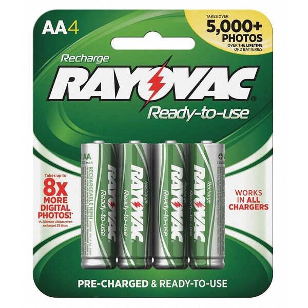 Precharged Rechargeable Batteries, Battery Size AA, Battery Chemistry Nickel-Metal Hydride, Voltage - Batteries 1.2V DC, Capacity - Batteries 2400mAh, Rechargeable Up To 300 Times, Precharged Yes, Standard Battery Pack Size 4, Package Quantity 4
