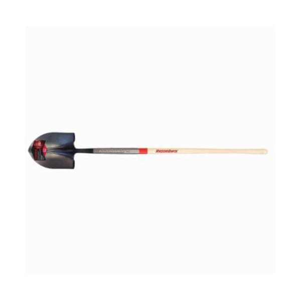Razor-Back SuperSocket round point shovel 48 in handle length, steel blade, 14 ga, hardwood handle, forward turned step/open back blade.