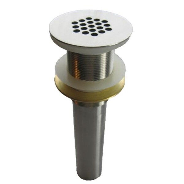 This high quality strainer drain is the perfect finishing touch for your beautiful new vessel sink. Constructed of solid brass for strength and durability, the 19-hole grid drain has a brushed nickel finish. Chrome or oil rubbed bronze finishes are also available. The drain assembly includes two rubber seals, a plastic spacer, and brass fastener. Designed to fit any vessel with a standard 1.5-inch opening, the drain is covered by a limited lifetime warranty.19 hole strainer drain for vessel sink; Brushed nickel finish Solid brass construction Includes two rubber seals, plastic spacer, and brass fastener 7 1/8-inches total length; Fits any standard 1.5-inch drain opening Limited lifetime warranty Item Length: 2.375 Item Width: 1.5 Item Height: 7.125 Material: Brass