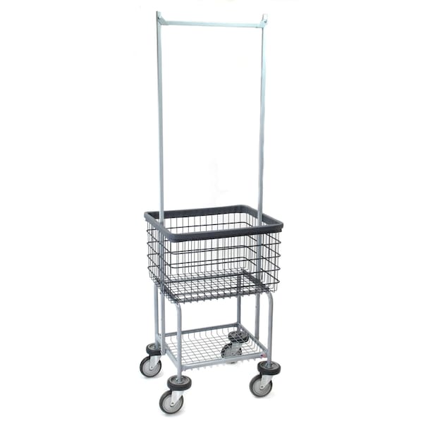 Elevated Wire Laundry Cart, 3.5 Bushel, with Storage Shelf and Double Pole Rack, Gray