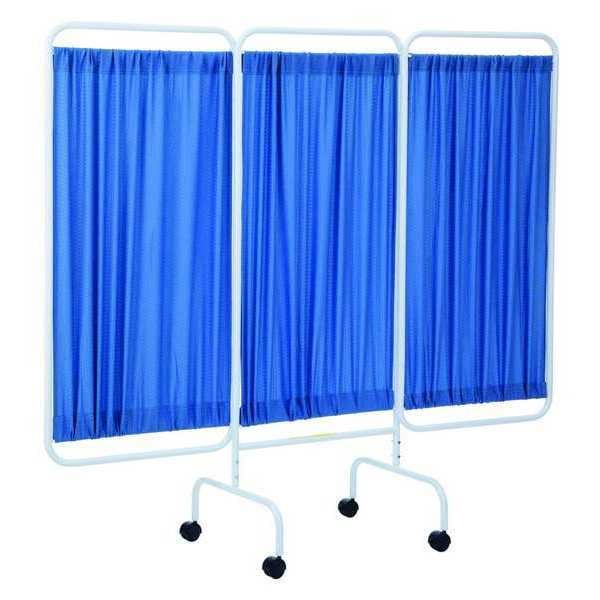 Privacy Screen, Number of Panels 3, Screen Color Blue, Screen Material Flame Retardant Antimicrobial Fabric, Overall Height 69 in, Frame Material Steel, Overall Width 81 in, Panel Height 55 in, Panel Width 27 in, Frame Color White