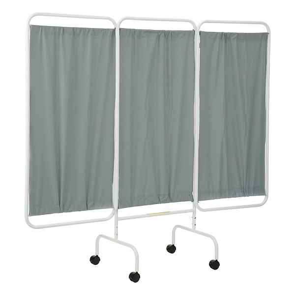 Privacy Screen, Number of Panels 3, Screen Color Green, Screen Material Flame Retardant Antimicrobial Vinyl, Overall Height 69 in, Frame Material Steel, Overall Width 81 in, Panel Height 55 in, Panel Width 27 in, Frame Color White