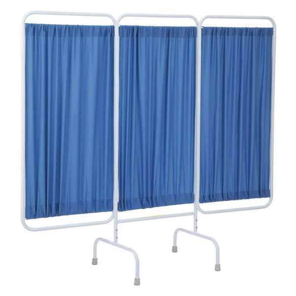 Privacy Screen, Number of Panels 3, Screen Color Blue, Screen Material Flame Retardant Antimicrobial Fabric, Overall Height 67 in, Frame Material Steel, Overall Width 81 in, Panel Height 55 in, Panel Width 27 in, Frame Color White