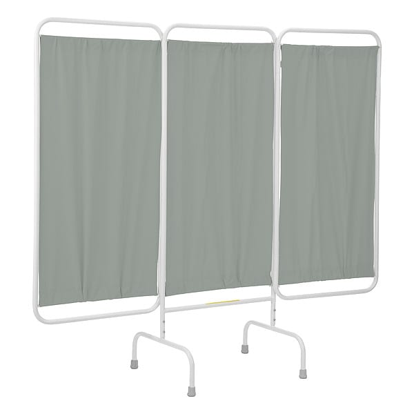 Privacy Screen, Number of Panels 3, Screen Color Green, Screen Material Flame Retardant Antimicrobial Vinyl, Overall Height 67 in, Frame Material Steel, Overall Width 81 in, Panel Height 55 in, Panel Width 27 in, Frame Color White