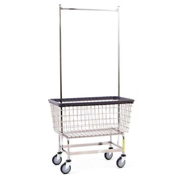 Wire Utility Cart with Double Pole Rack, 4.5 Bushel, Blue Basket, Gray Base/Rack